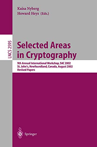 This book constitutes the thoroughly refereed post-proceedings of the 9th Annual International Workshop on Selected Areas in Cryptology, SAC 2002, held in St. John's, Newfoundland, Canada, in August 2002. The 25 revised full papers presented were carefully selected from 90 submissions during two rounds of reviewing and improvement. The papers are organized in topical sections on elliptic curve enhancements, SNOW, encryption schemes, differential attacks, Boolean functions and stream ciphers, block cipher security, signatures and secret sharing, MAC and hash constructions, and RSA and XTR enhancements.